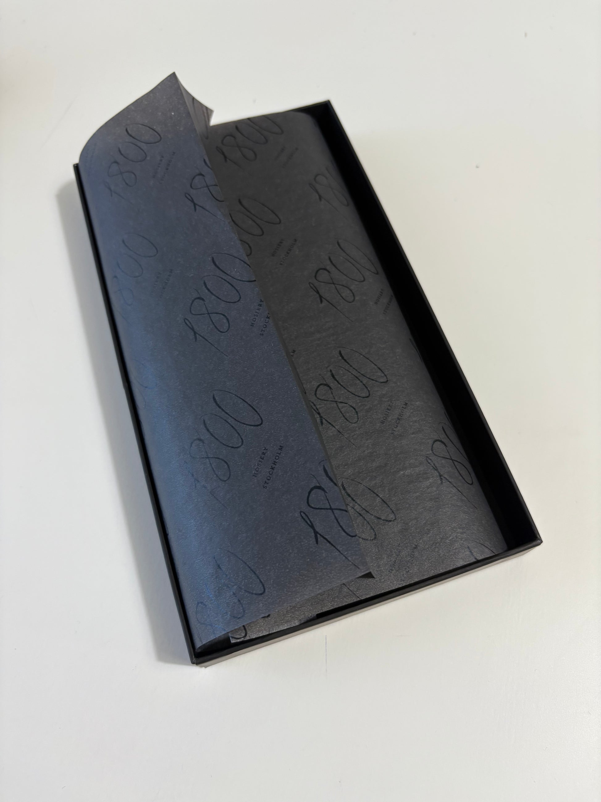 Paketeras i silkespapper i den svarta 1800-boxen.