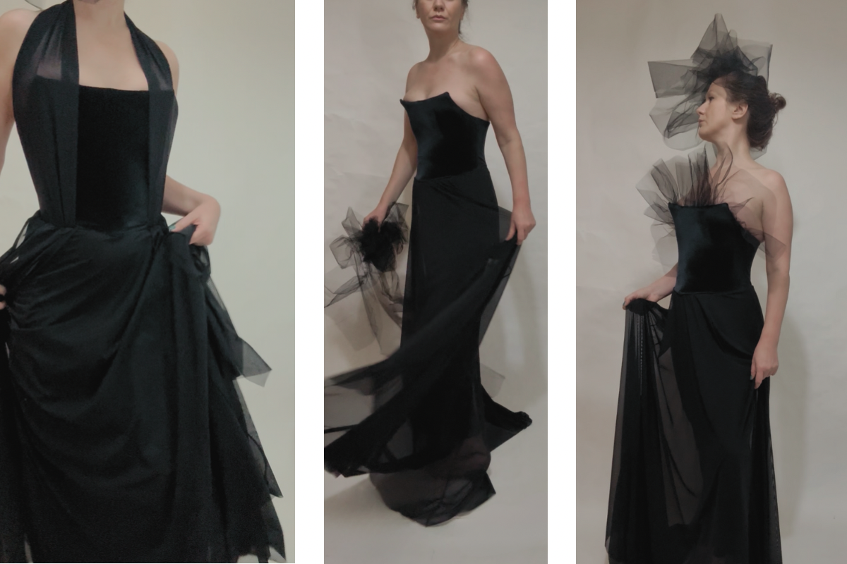 The timeless black romantic dresses for winter holiday events. Tailored in Stockholm upon order. Ships within two weeks.